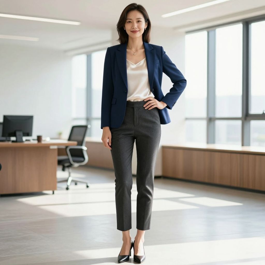 1 Sleek Blazer with Silk Cami and Slim Trousers