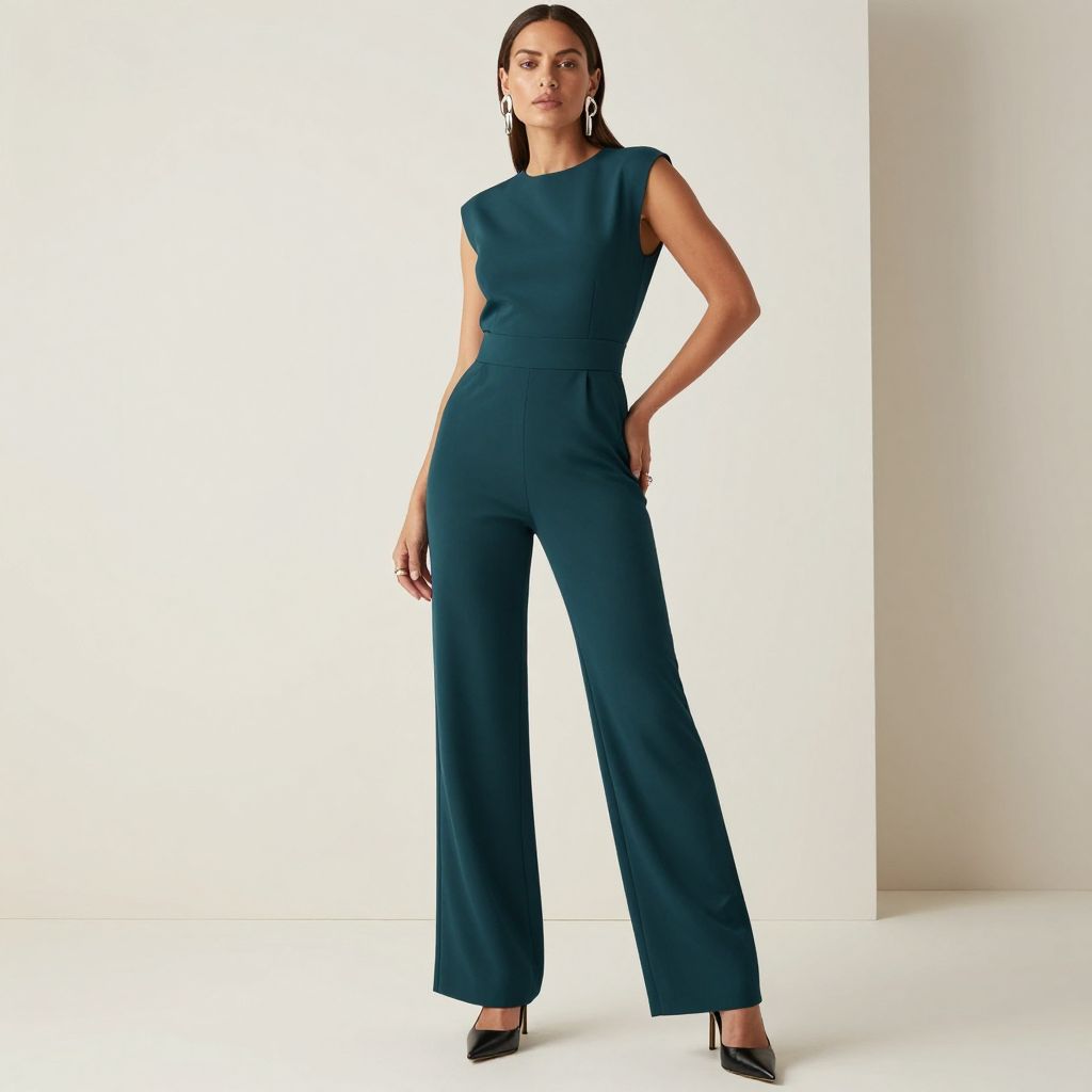 • Key Pieces: solid jumpsuit, sleek shoes, bold earrings