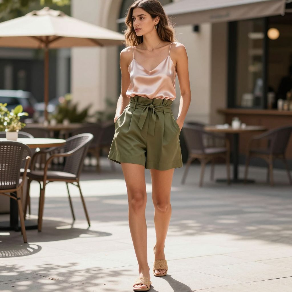 - Color idea: blush cami with olive shorts feels fresh yet grounded