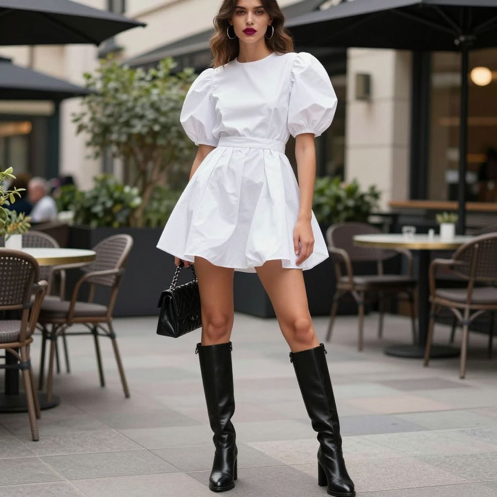 Enter the puff sleeve mini dress that shows legs and captures flashbulbs.