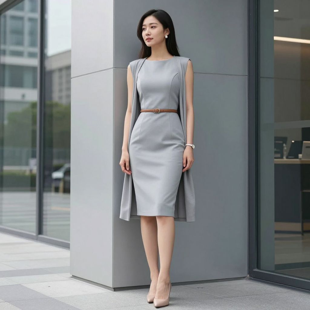 2. Soft Gray Sleeveless Sheath And Longline Cardigan