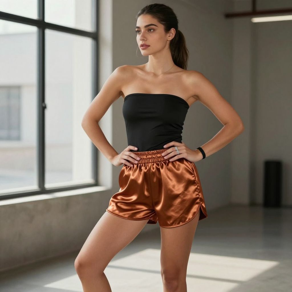 - Key pieces: satin shorts black bandeau